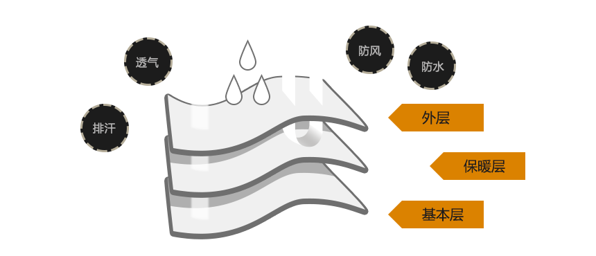 部、肘部加耐磨層;內(nèi)中下部有防風腳,以防止風從下擺灌入衣內(nèi);腋下可配透氣拉鏈,在出汗較多的情況下可直接拉開透氣;內(nèi)置式帽子,以便在不用的時候可以收起。不同款式的配色設(shè)計、及特殊細節(jié)處理:如在袖口處有小掛扣,等等。
